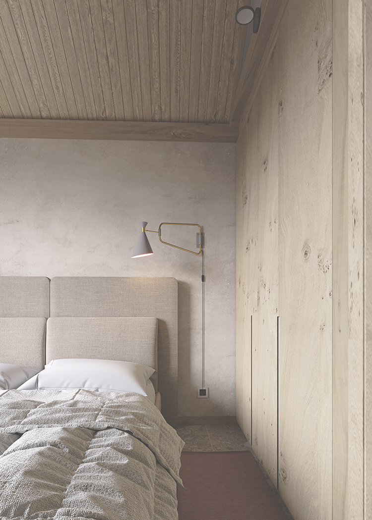 to decorating is both modern and minimal, yet there's nothing cold or impersonal about it. The warm finishes and soft furnishings make this a great room for spending a cozy night in.